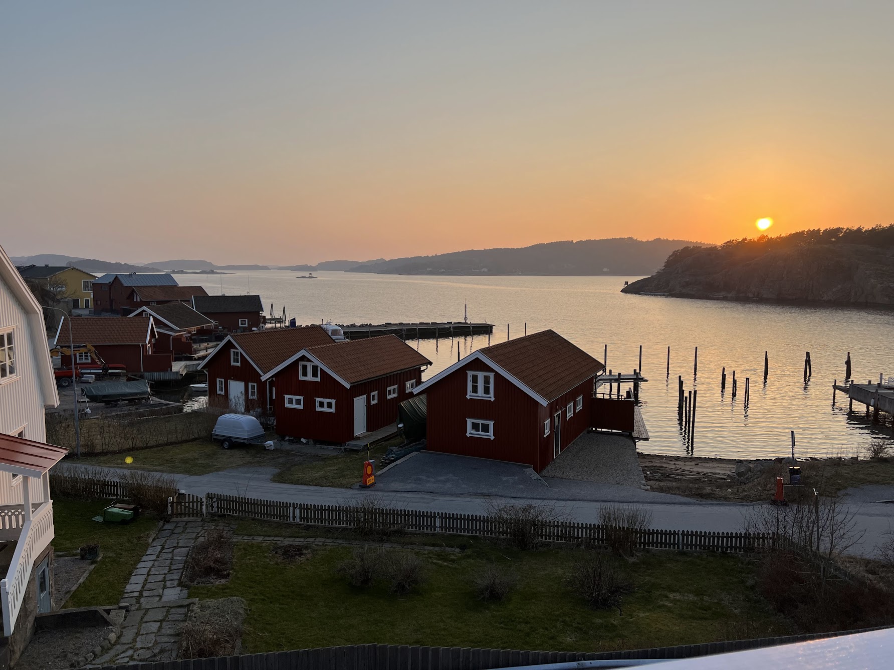 Villa från 1914 i fyra plan med åtta sovrum, två kök, fem badrum med utsikt över Fjällbacka och havet.